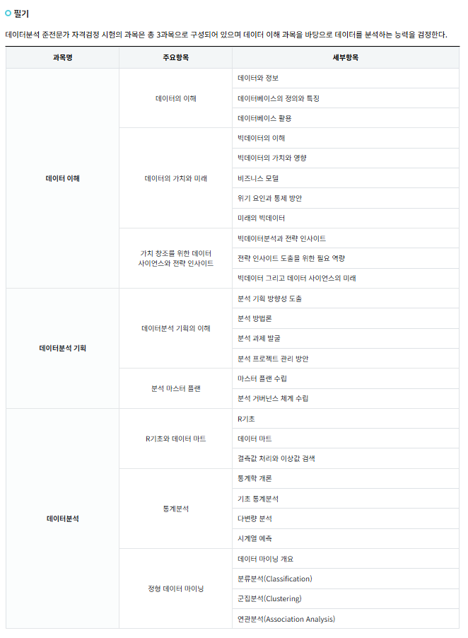 2. ADsP 시험 과목 구성 (필기 3과목)